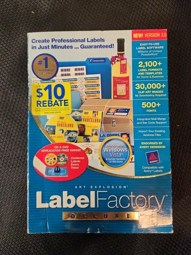 › Art-Explosion-Label-Factory-Deluxe › dpAmazon.com: Art Explosion Label Factory Deluxe Jul 12, 2002 · Art Explosion Label Factory Deluxe is a fast and easy way to create professional-quality labels. This product uses wizards to assist you in making even the most complex labels in just minutes. Behind its simple interface is a powerful application with a sophisticated set of features.